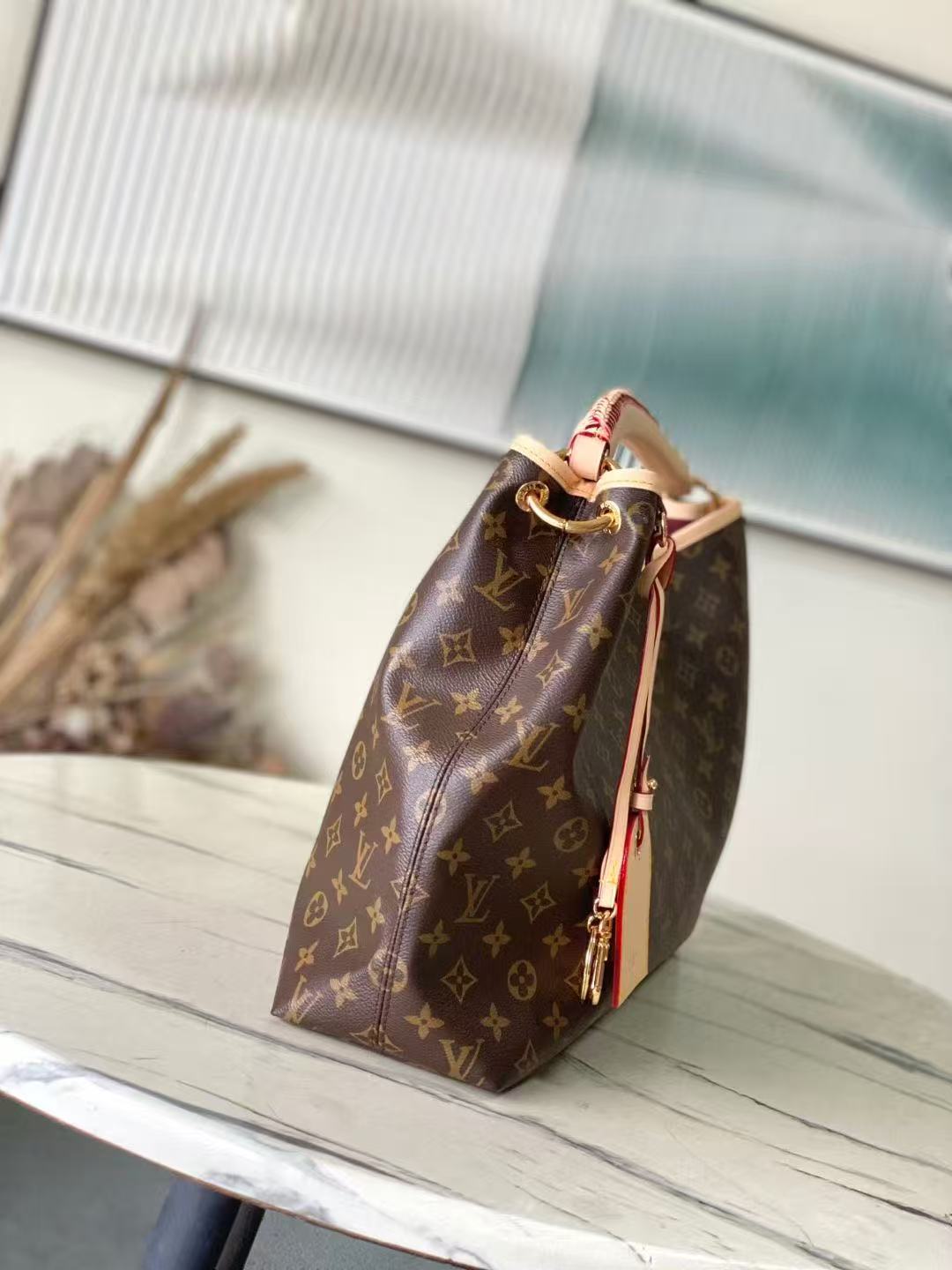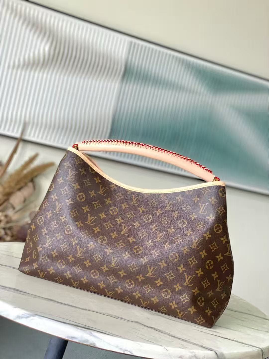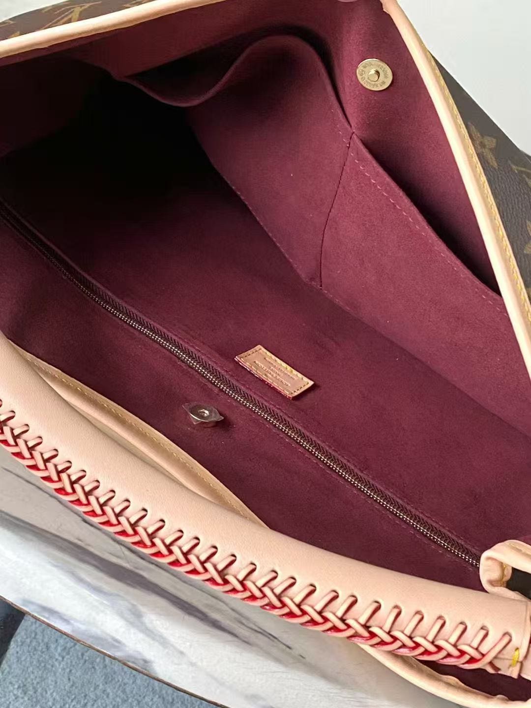 Whether carried by hand or on the shoulder, the Again Shoulder Bag M25877 blends comfort, elegance, and practical space in one beautifully constructed design. The combination of its structured yet soft form, monogram-style surface, and handcrafted handle makes it a standout choice for those who appreciate both artistry and everyday usability.