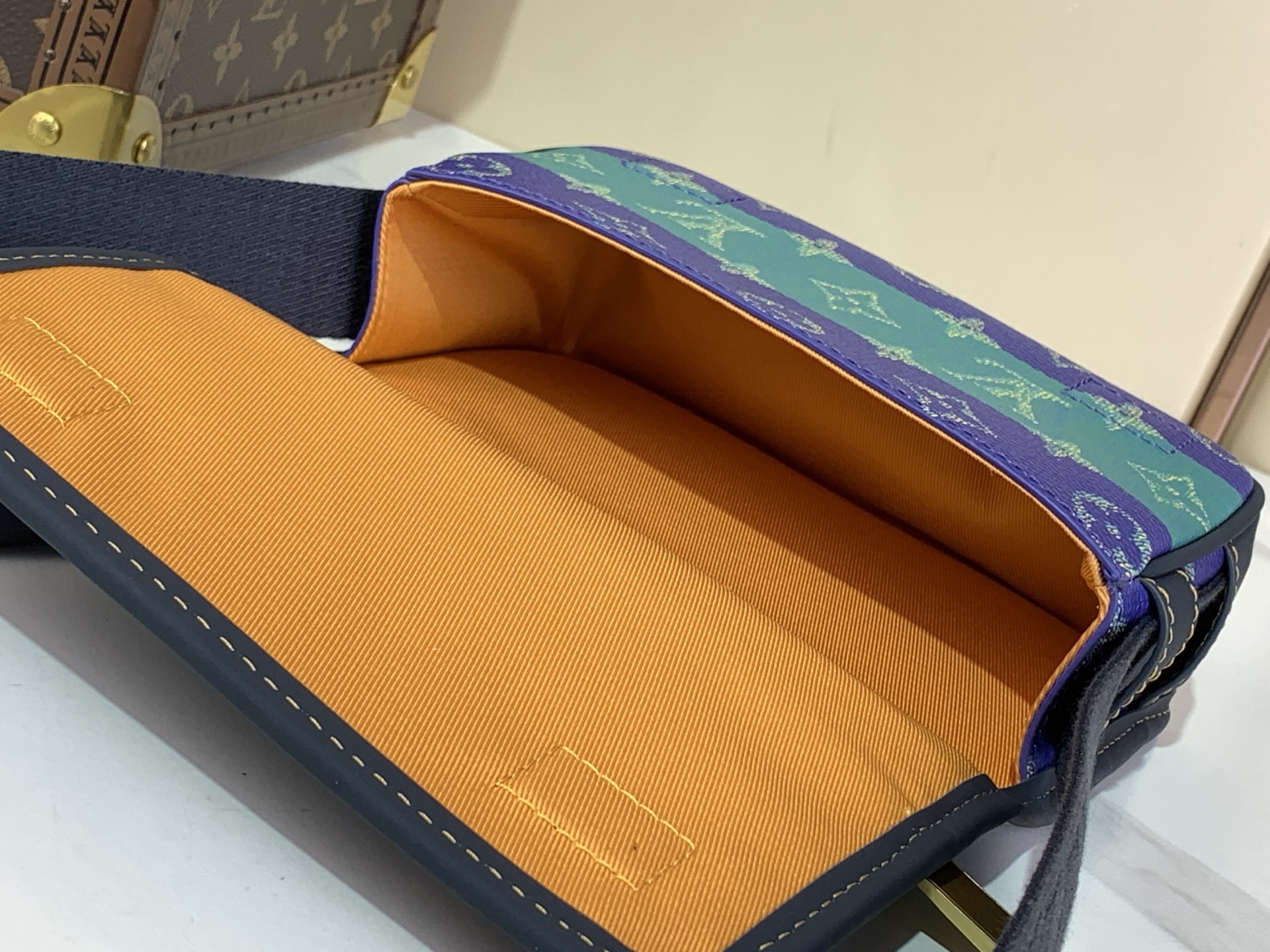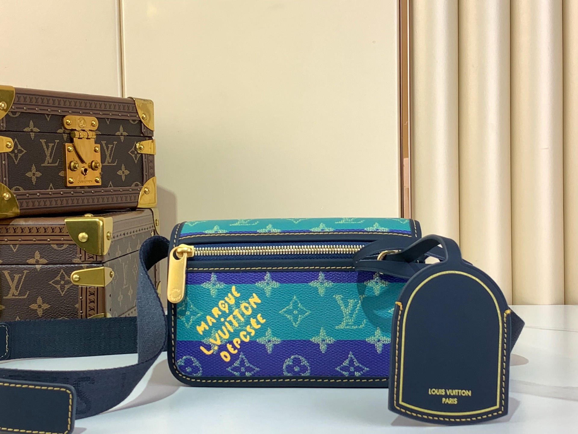 Top of the line M13173 blue color blocking, men’s messenger bag BOSPHORE mini handbag, this Bosphore mini handbag is named after the brand’s retro Bosphore Hr series from the 2000s, achieving comfortable carrying with simple lines and compact configuration, and showcasing classic meaning through a detachable brand. The adjustable fabric shoulder strap crosses the accordion loop and is intricately detailed with the zipper front pocket. Size: 12 x 7 x 19 cm.