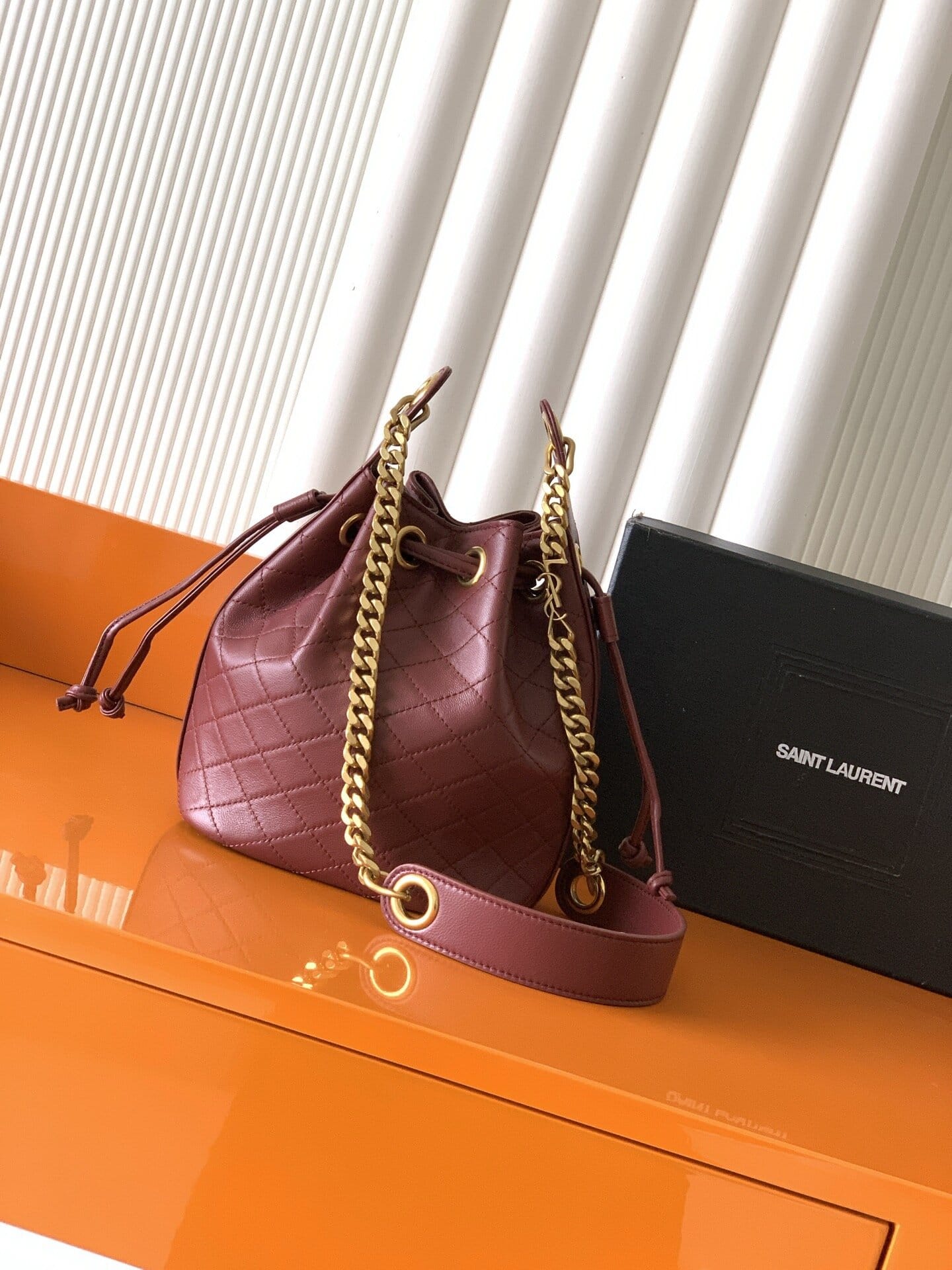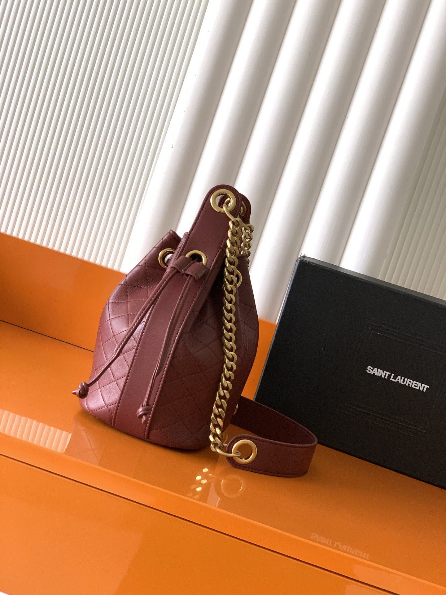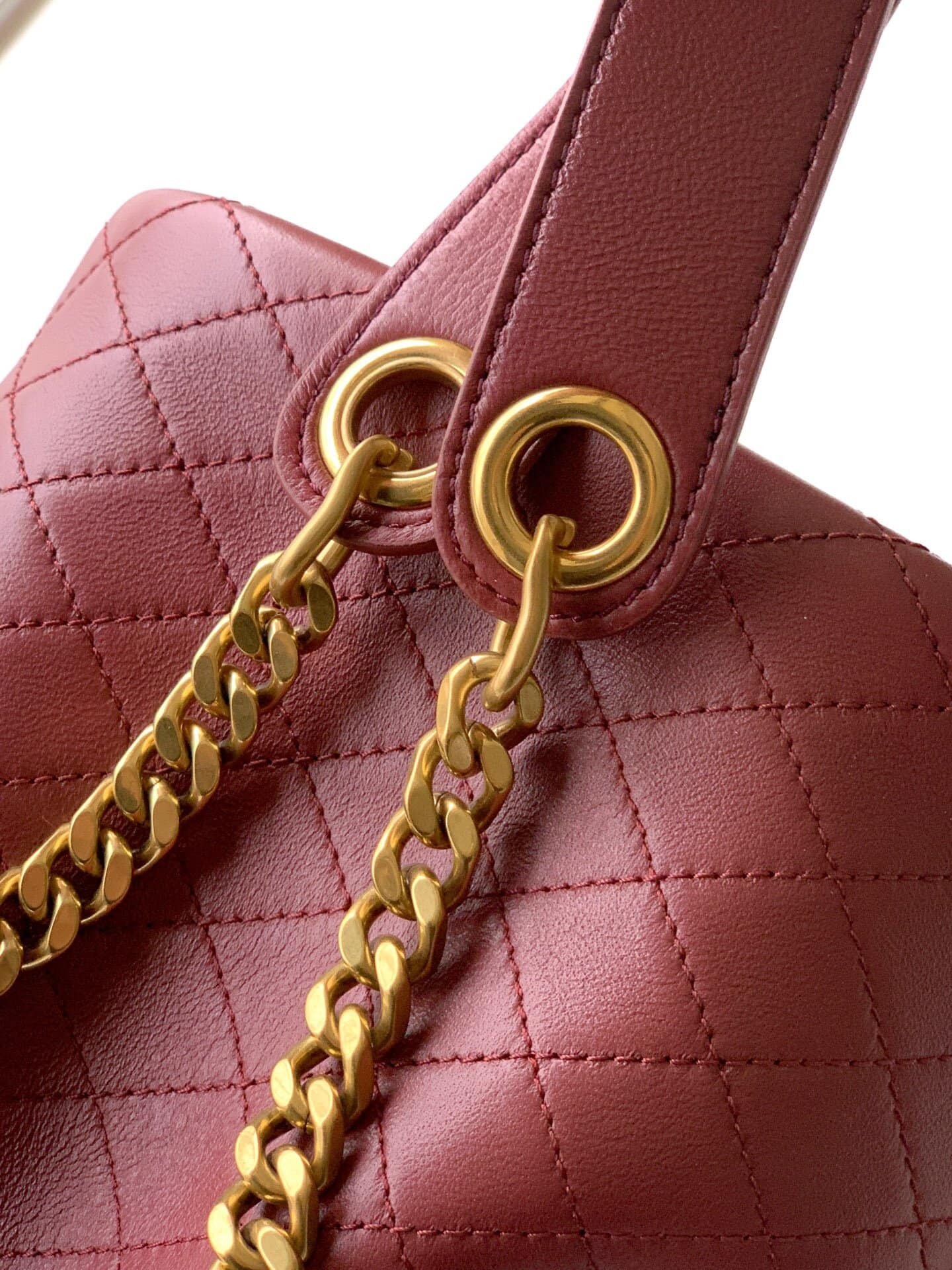 Overall, this mini lambskin quilted bucket bag, model 840886 and sized at 15.5 x 11 x 25 cm, offers an ideal combination of softness, charm, and functionality. Its premium material, adjustable opening, comfortable chain strap, and efficient interior design make it a perfect choice for small-bag enthusiasts. Designed to be held close and worn with ease, it delivers a refined yet playful accessory that fits seamlessly into modern daily life. The mini lambskin quilted bucket bag is a must-have for anyone looking to elevate their accessory game.
