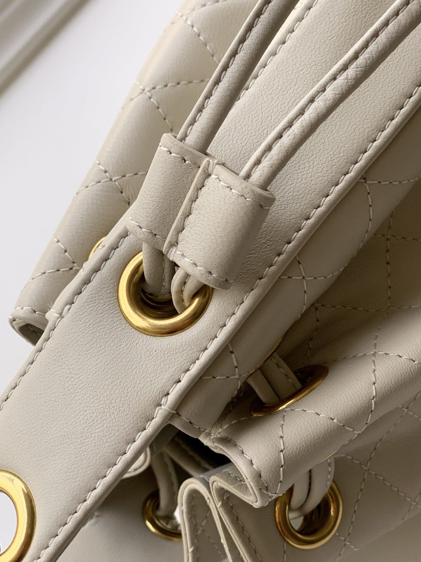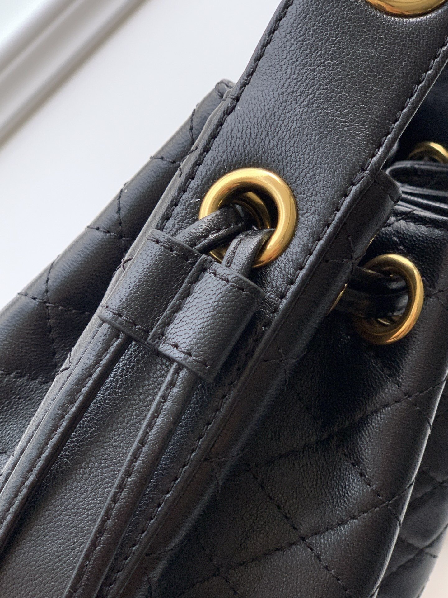 From a styling perspective, this bag complements a wide range of outfits. It pairs effortlessly with casual wear, soft knits, dresses, and structured looks alike. The bucket silhouette adds a modern edge, while the quilted lambskin brings a sense of timeless elegance. Whether worn during the day or styled for evening occasions, the bag enhances overall appearance with subtle sophistication.