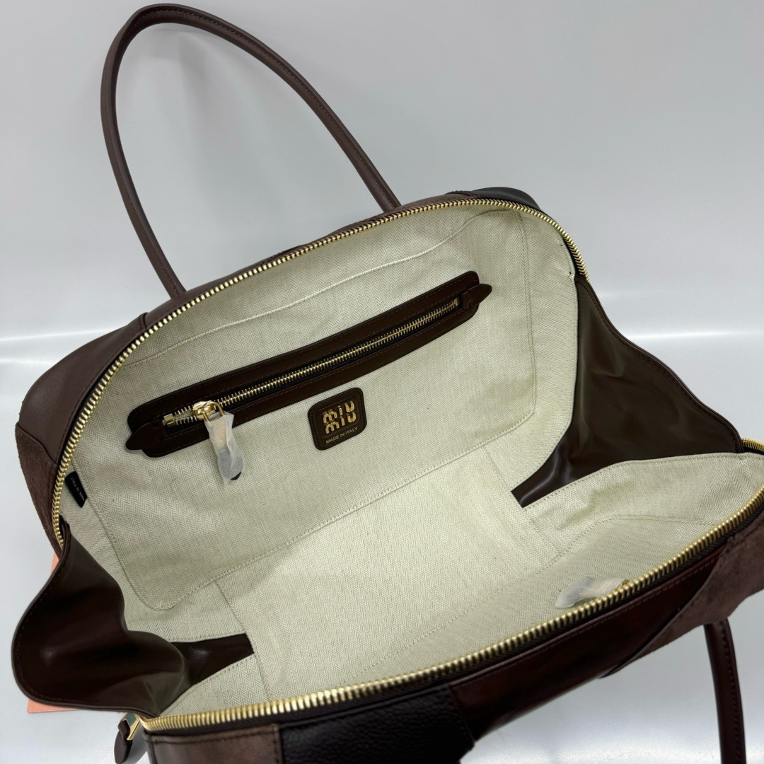 Crafted with mixed-texture leather panels, the design features smooth and suede-touch contrasts that add depth and character. The spacious interior easily fits documents, a tablet, and everyday essentials, while the full-zip closure keeps items secure. Reinforced edges and polished details complete the clean, modern shape.98563