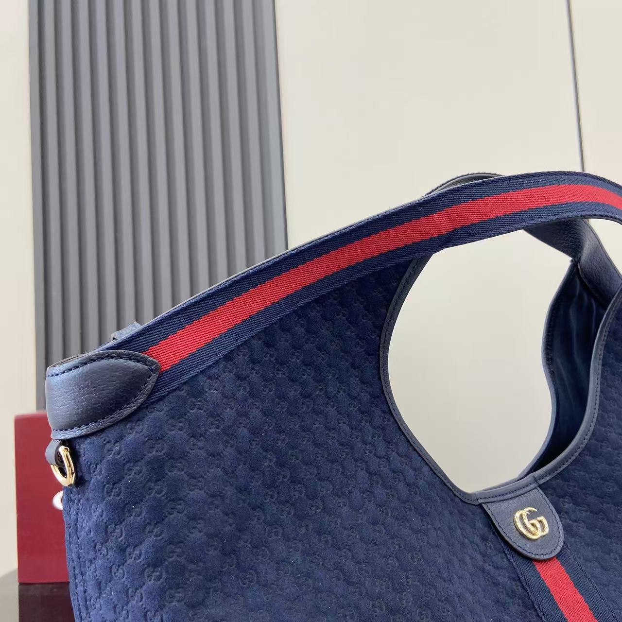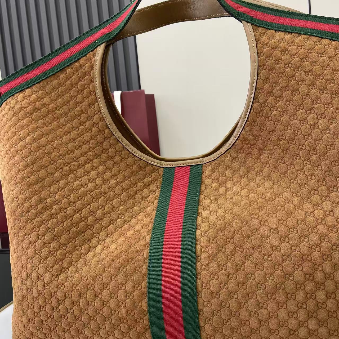 Round-handle suede tote 853971, size 60 × 47 × 16 cm.