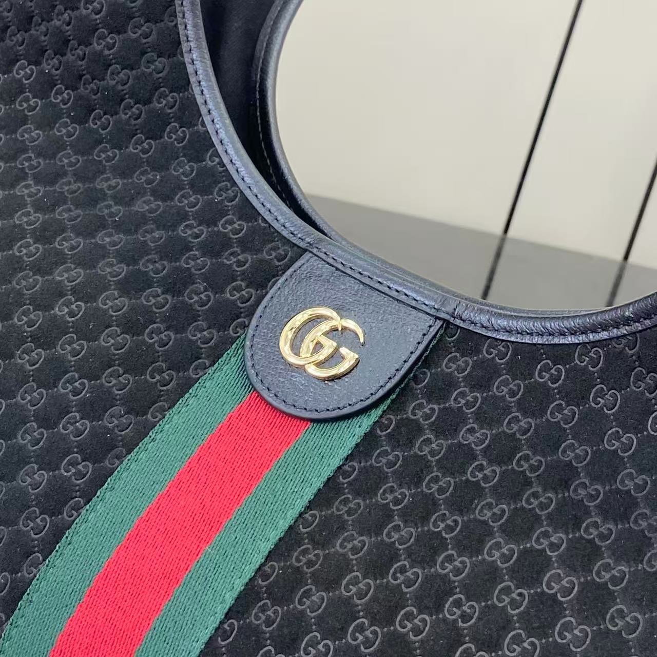 This round-handle suede tote features a soft, spacious silhouette that offers effortless practicality for daily use. The open circular handle adds a sculptural touch, giving the design a distinctive and modern character.