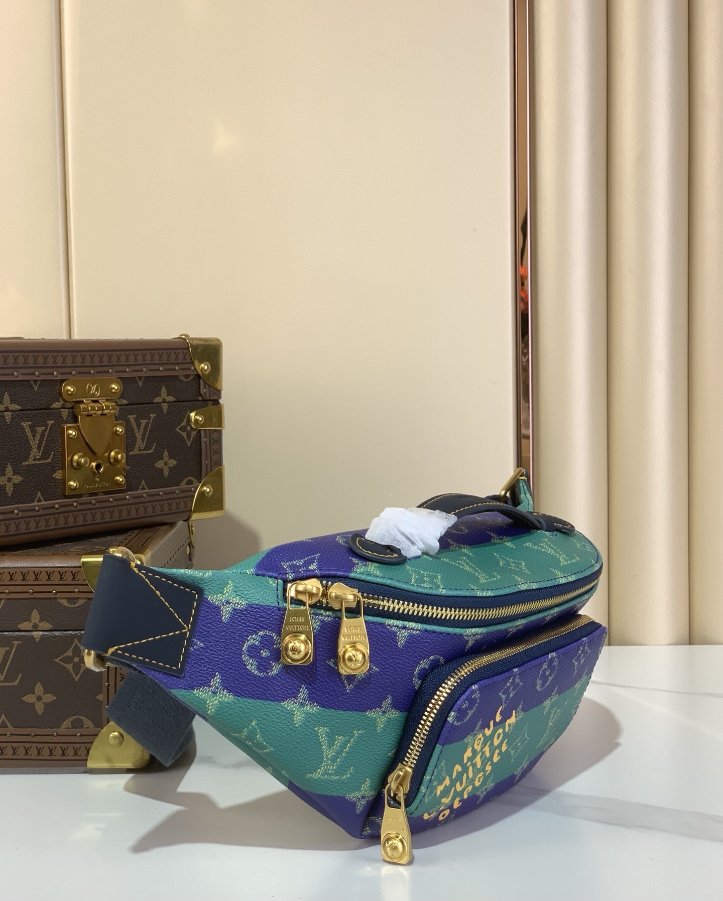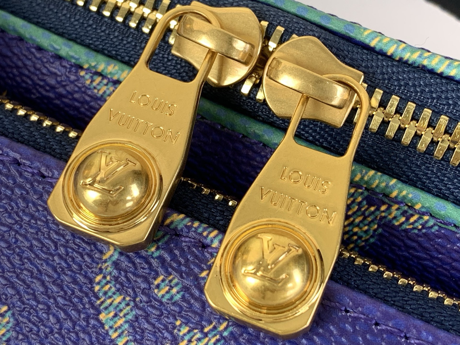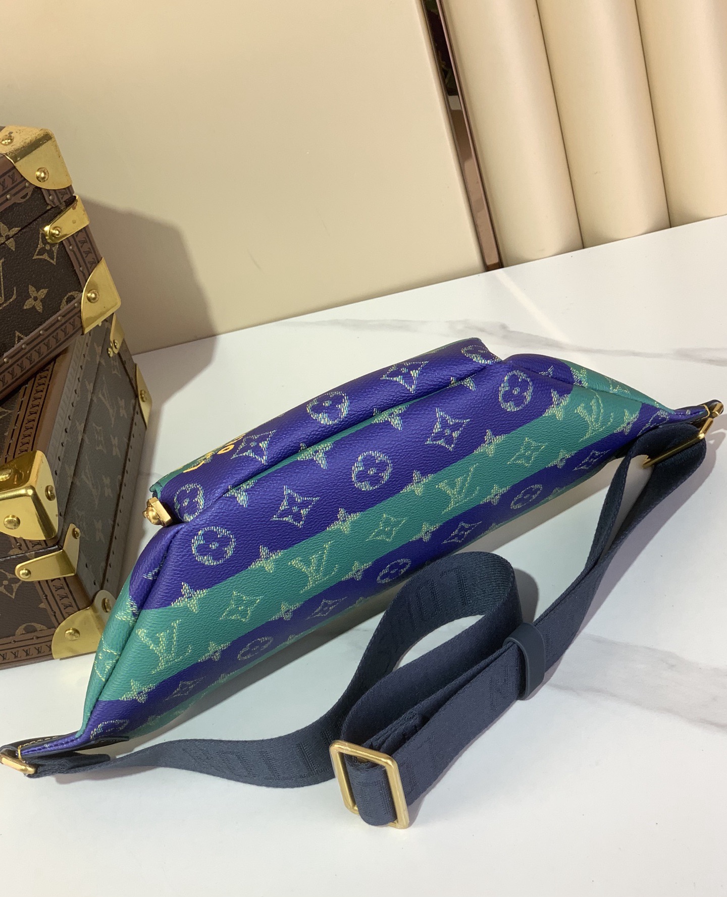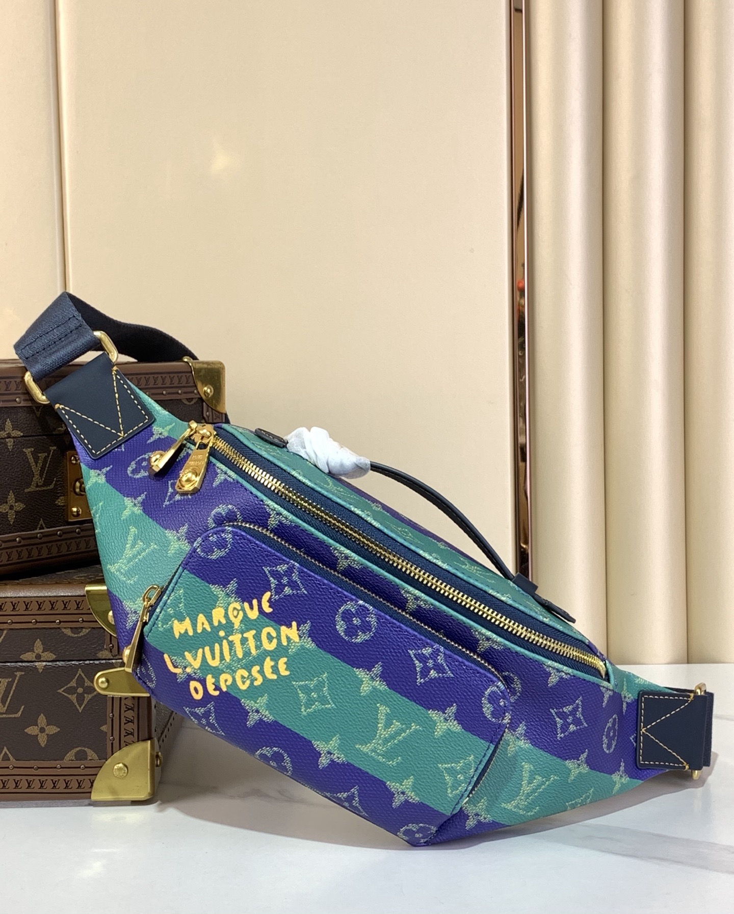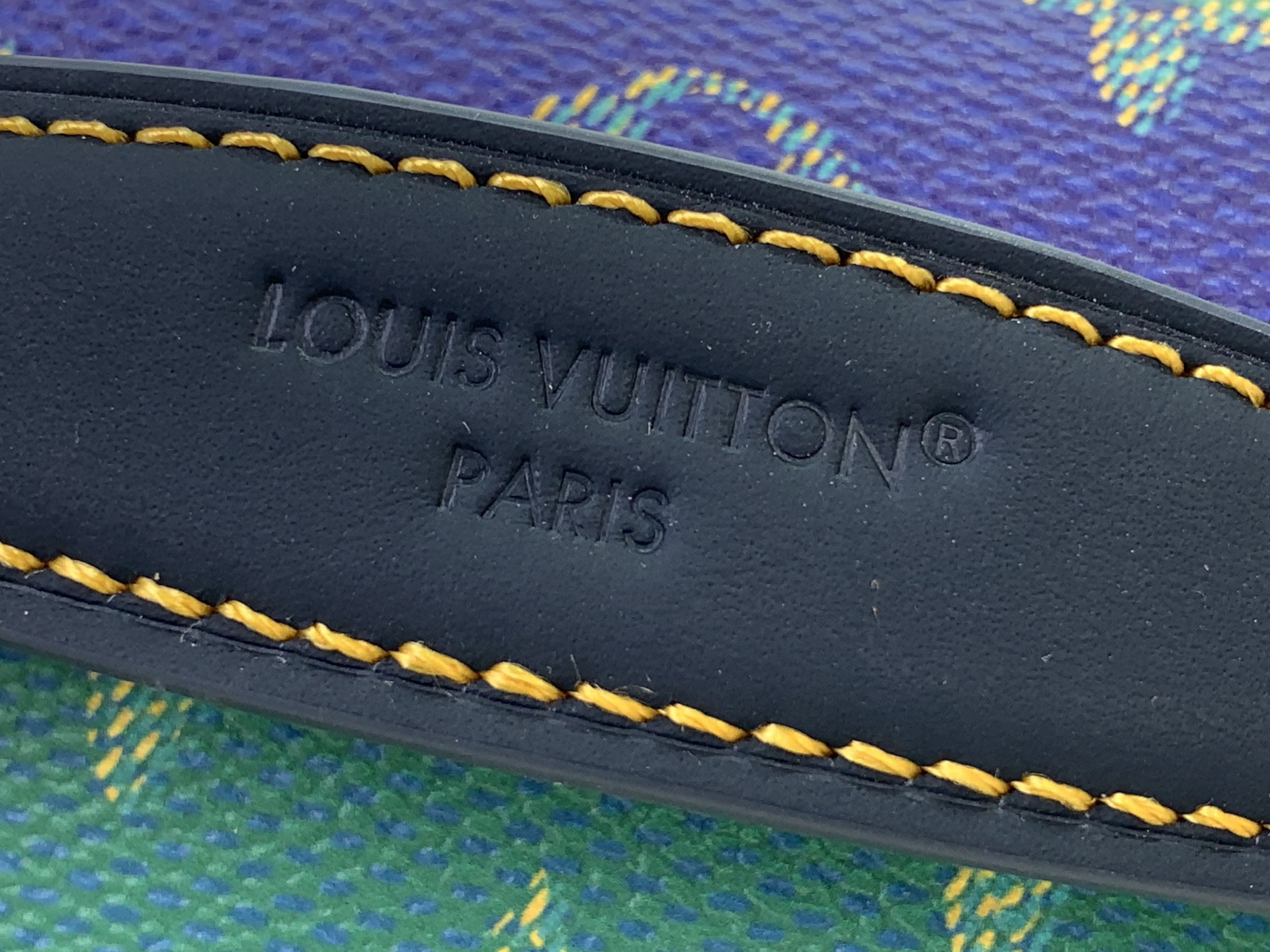 Rush waist bag, made of Monogram Heritage hr canvas, featuring the brand’s classic Damier plaid elements with Pharrell Williams’ new Monogram pattern. The front pocket is embellished with the Marque L. Vuitton D é pos é e logo derived from Damier canvas, and the top handle is equipped with a detachable dog paw bag decoration.