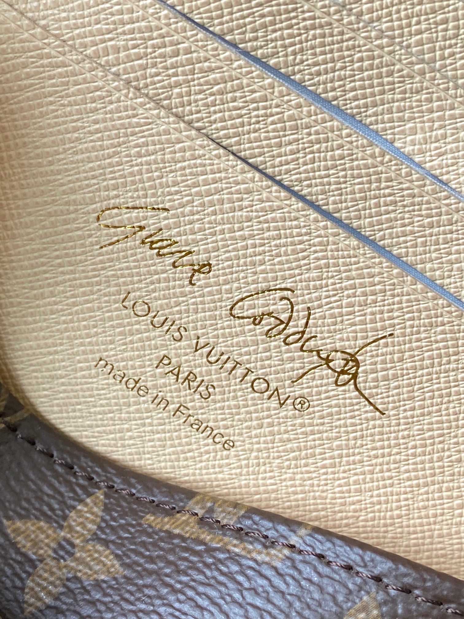 Crafted from coated canvas with smooth leather trims, the bag includes polished metal hardware, a detachable chain strap, and an adjustable leather shoulder strap for multiple ways to wear. The interior is lined with soft fabric and includes a practical slip pocket for essentials.M15148