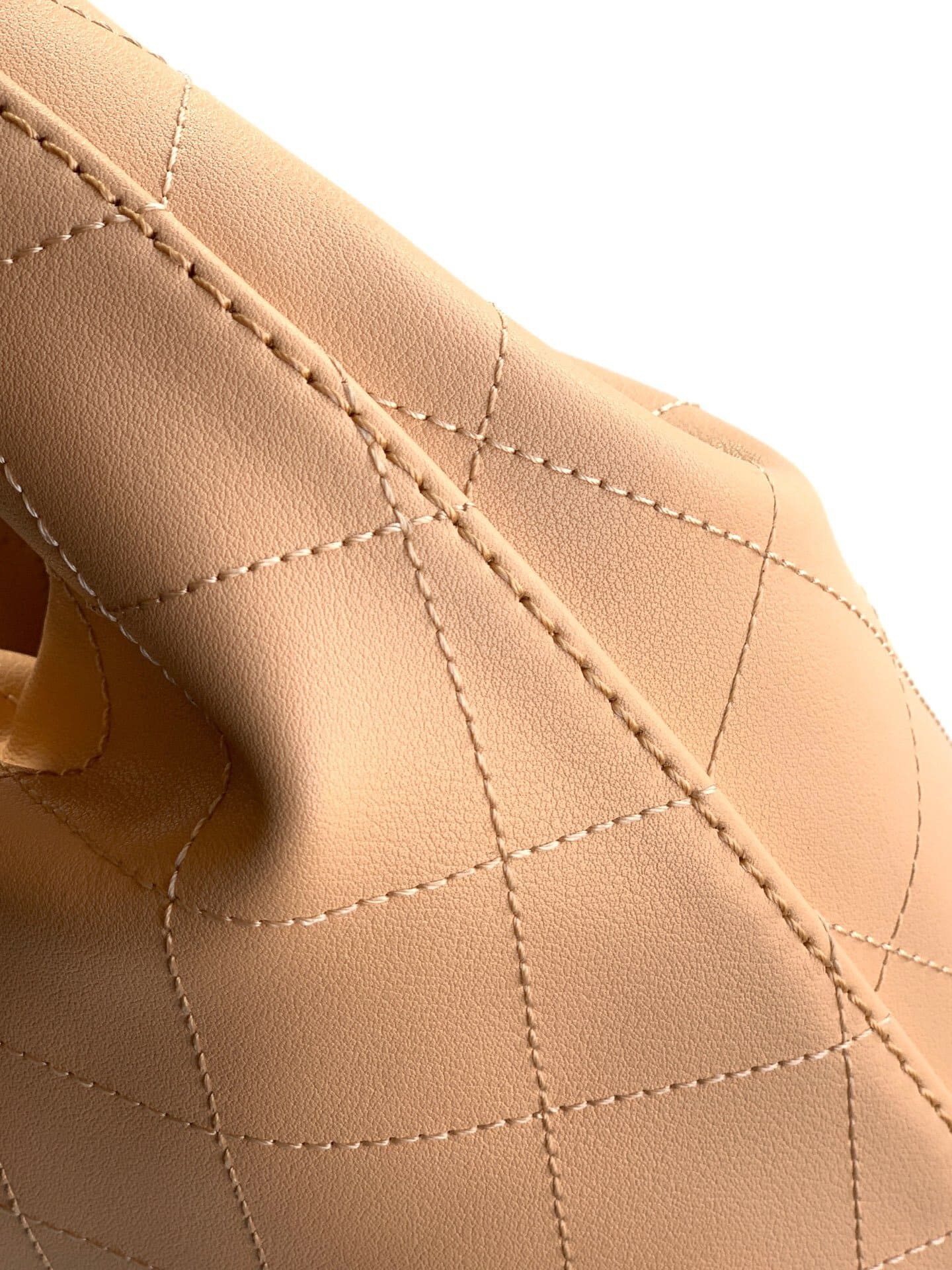 One of the defining characteristics of this small quilted leather hobo bag is its softly structured shape. The body is designed to drape naturally while retaining enough support to hold its form. This balance ensures the bag looks relaxed yet polished, making it suitable for both casual outings and more refined occasions. The sculpted outline adds quiet confidence to any outfit, offering a look that feels effortless rather than overstyled.