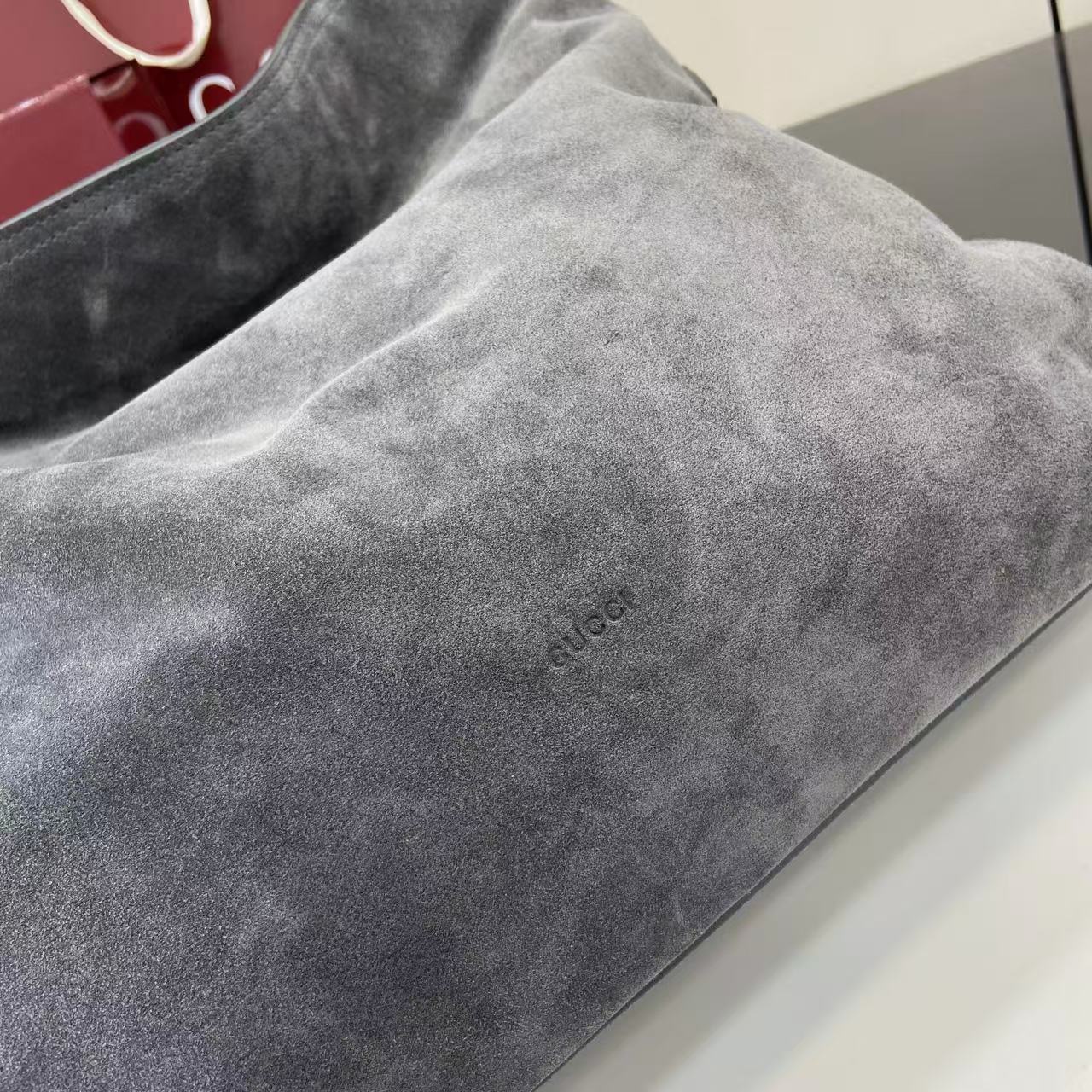 Soft Suede Beatrix Hobo Bag 850546 in large grey suede, size 40 Ă 36 Ă 12 cm.