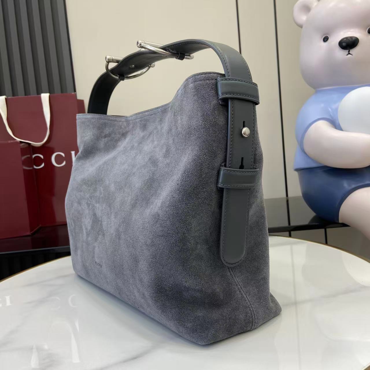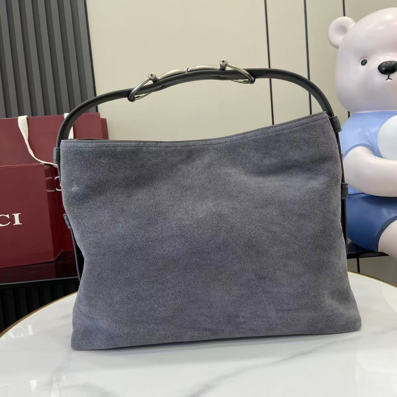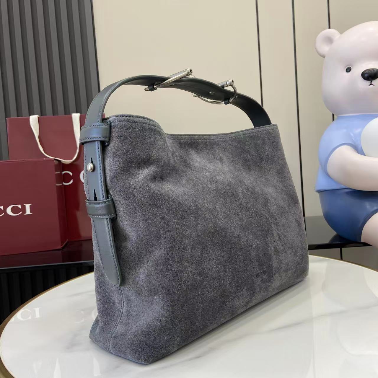 Soft Suede Beatrix Hobo Bag 850926 in grey suede, size 35 Ã 27.5 Ã 11 cm.