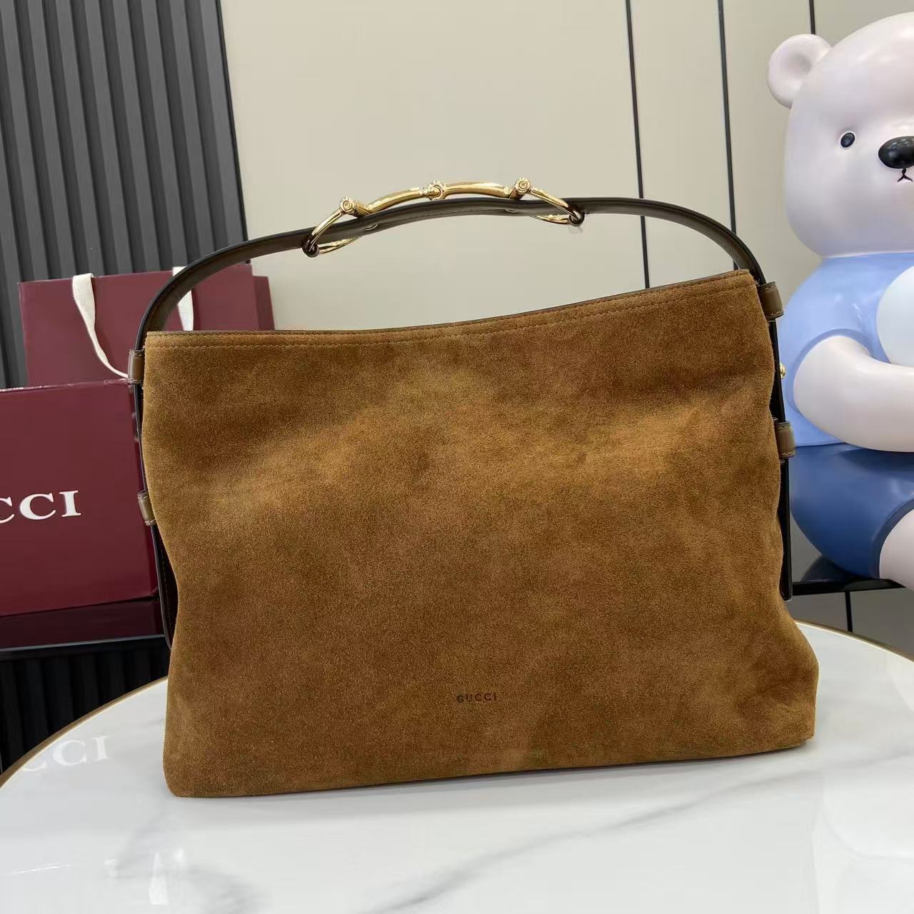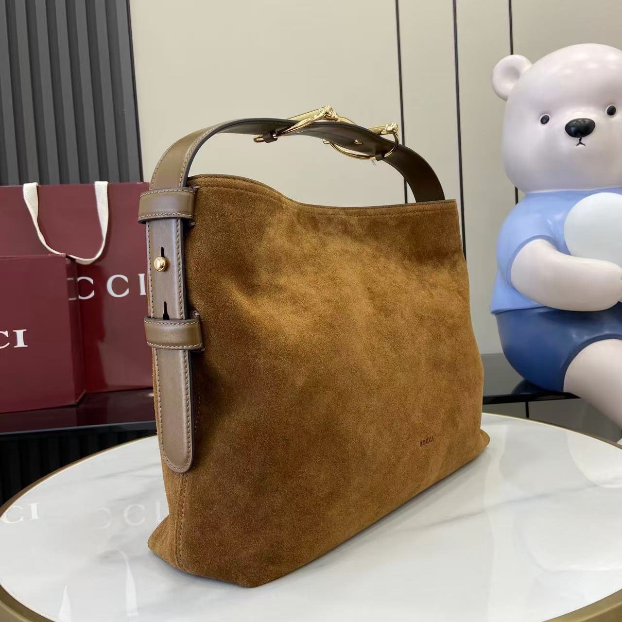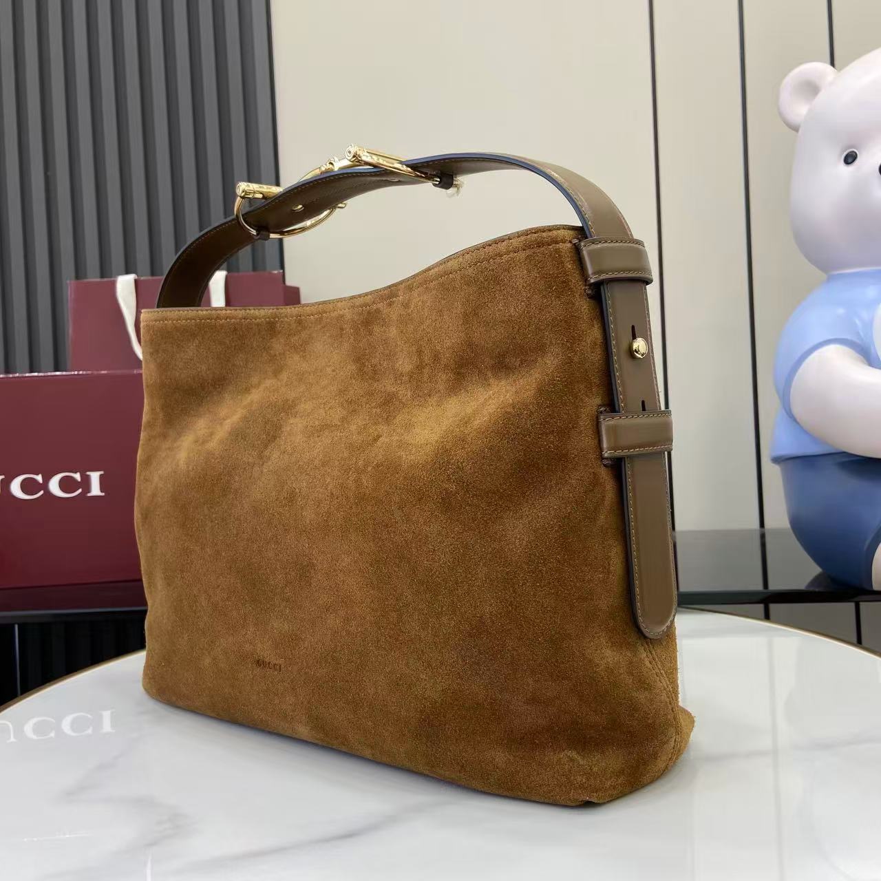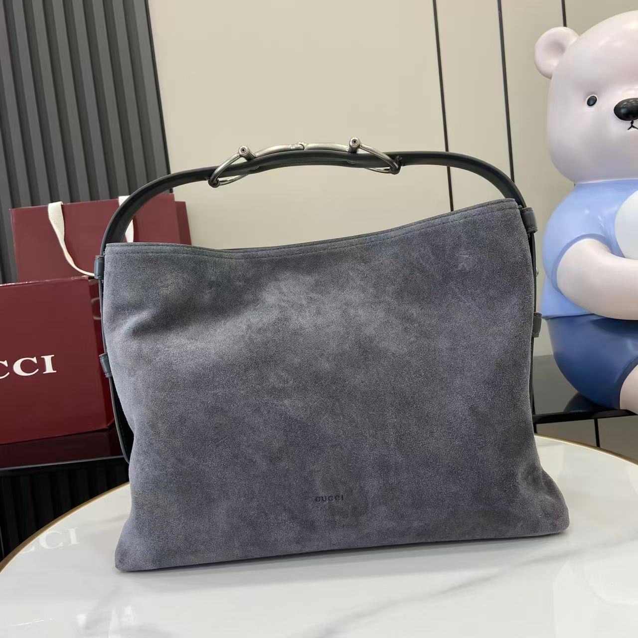 Soft Suede Beatrix Hobo Bag 850926 in grey suede, size 35 Ã 27.5 Ã 11 cm.