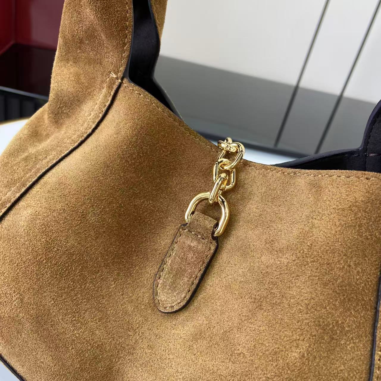 The medium size 837467 model offers a generous interior but maintains a sleek shape that complements both casual and structured outfits. Its balance of softness and refinement makes it versatile for many lifestyles, from urban commutes to weekend errands. This thoughtful combination of craftsmanship, silhouette, and materials ensures that the Soft Suede Medium Hobo Bag stands out as both functional and visually appealing.