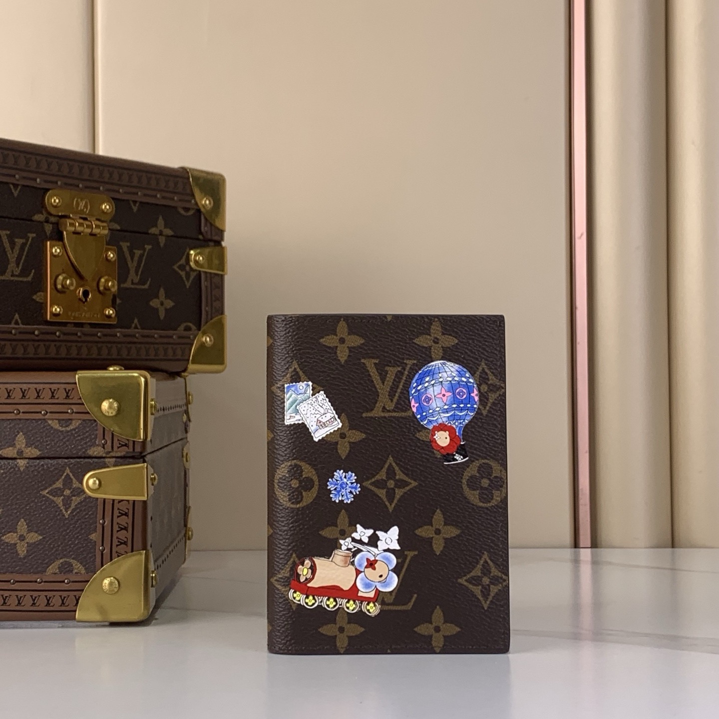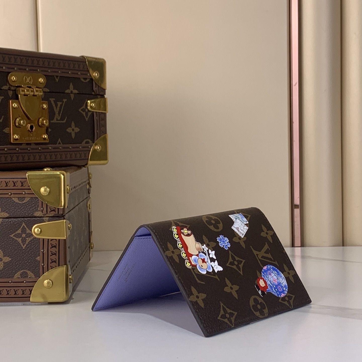 The Passport Holder Christmas Edition (M15230) features playful winter illustrations inspired by the Vivienne Wintery Travel series, adding festive charm to the iconic monogram-style canvas. The design highlights Vivienne’s adventurous character along with seasonal motifs, creating a lively contrast against the coated canvas exterior. Inside, a contrasting leather-style lining offers both durability and refined detailing.