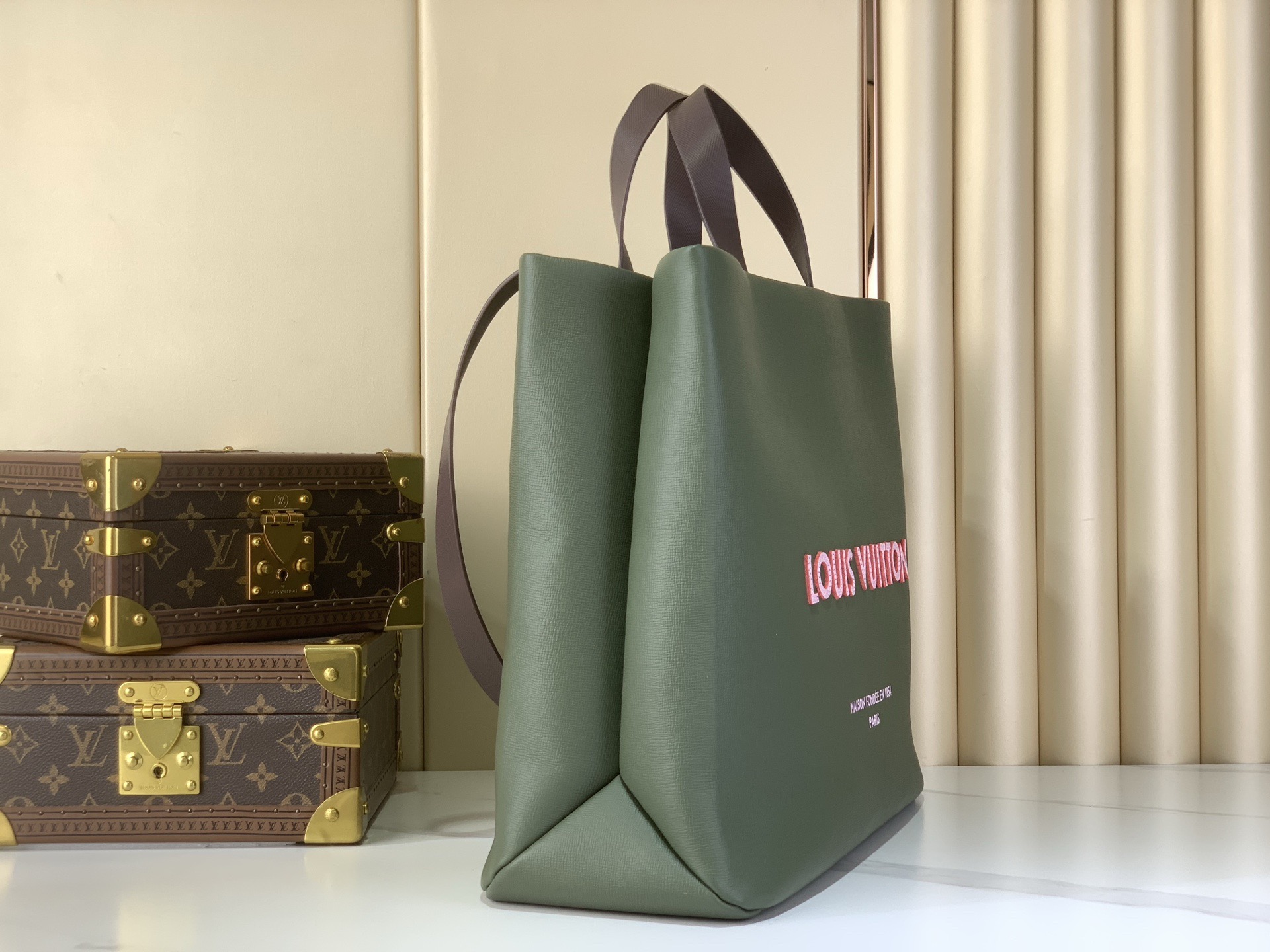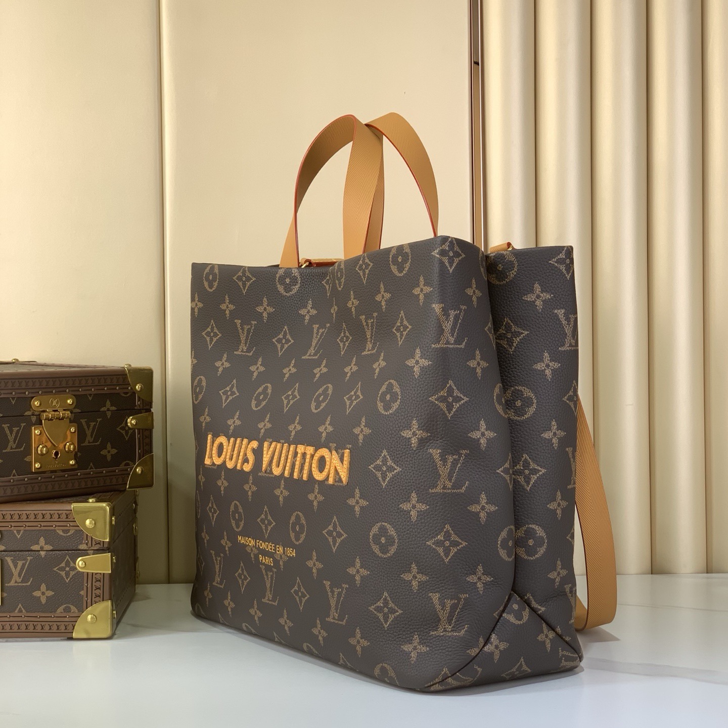 The Shopper Large Tote (M14270) showcases Pharrell Williamsâ signature design language, featuring bold and âMaison FondĂŠe en 1854â lettering on rich Monogram leather. This spacious tote is crafted to deliver both fashion impact and everyday utility, making it ideal for travel, business, and urban styling.