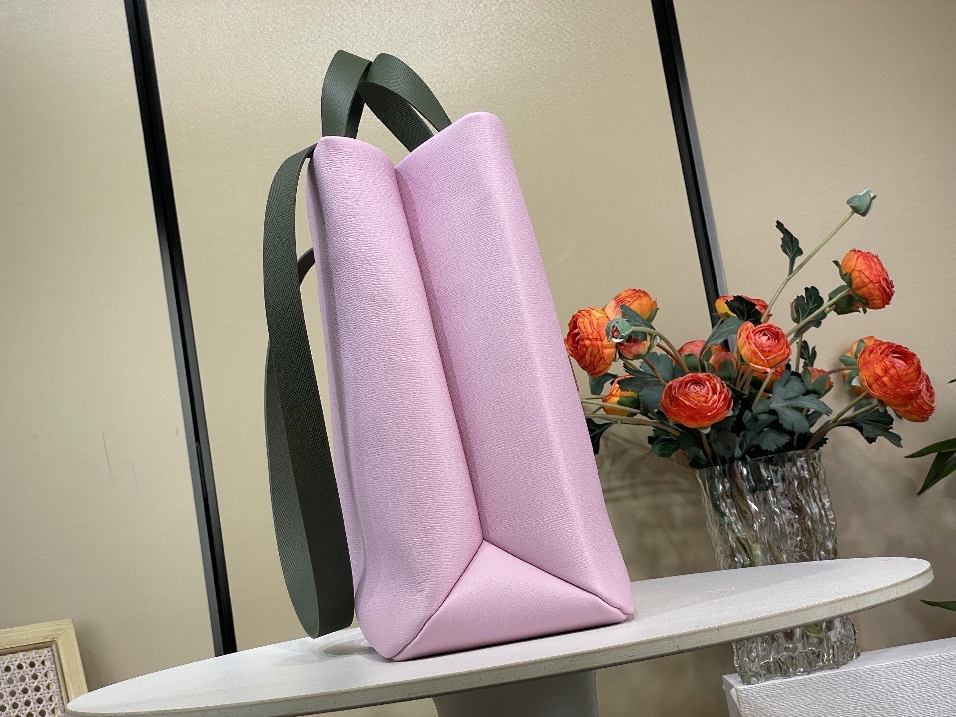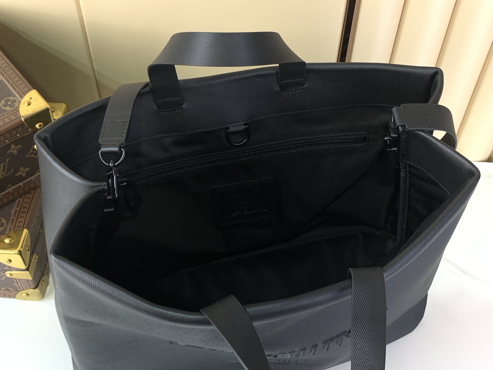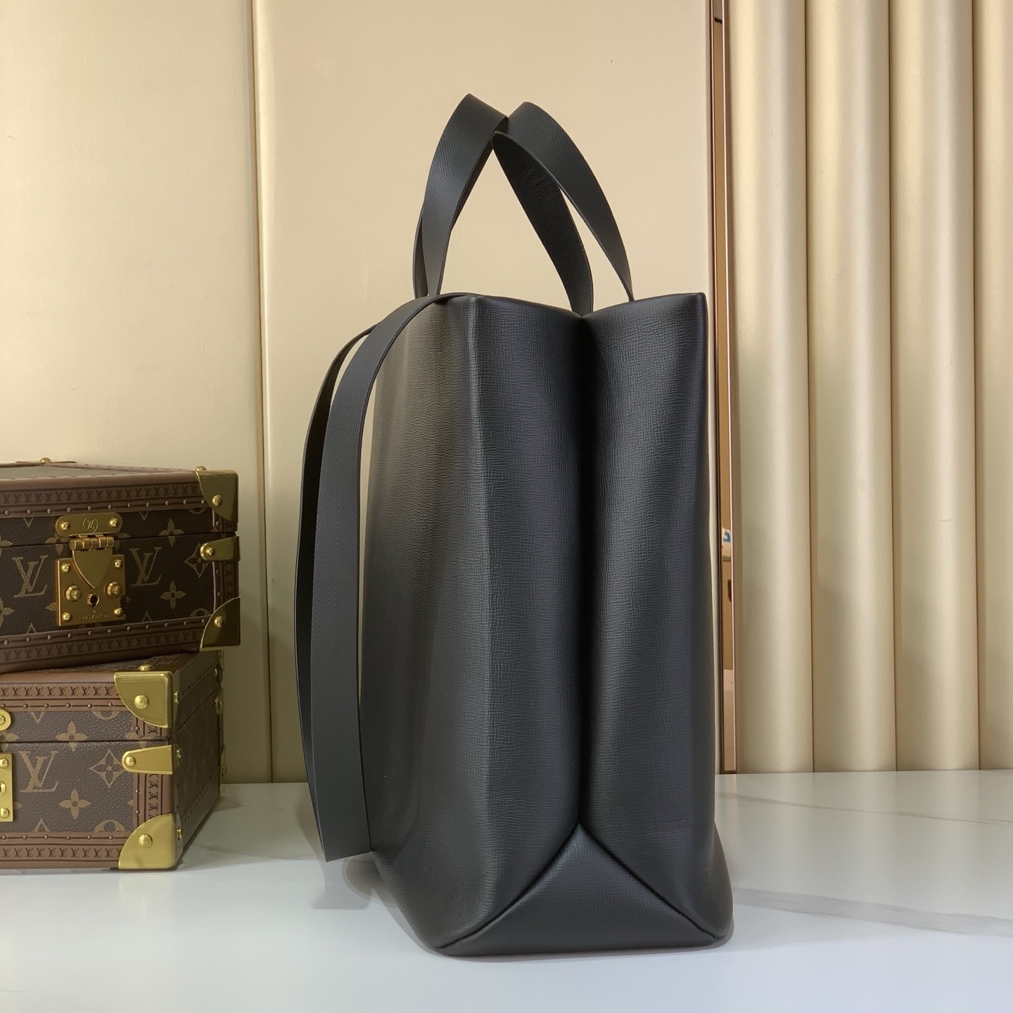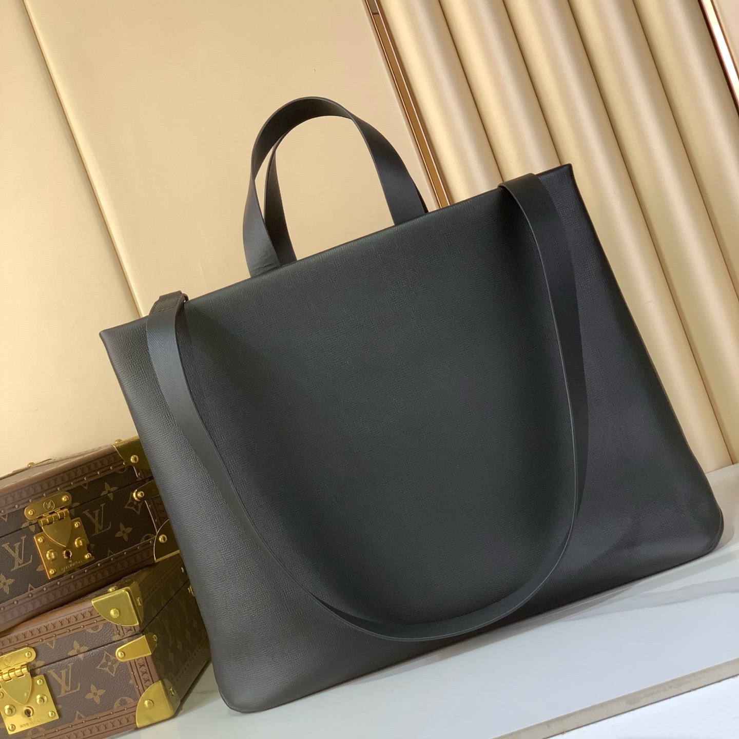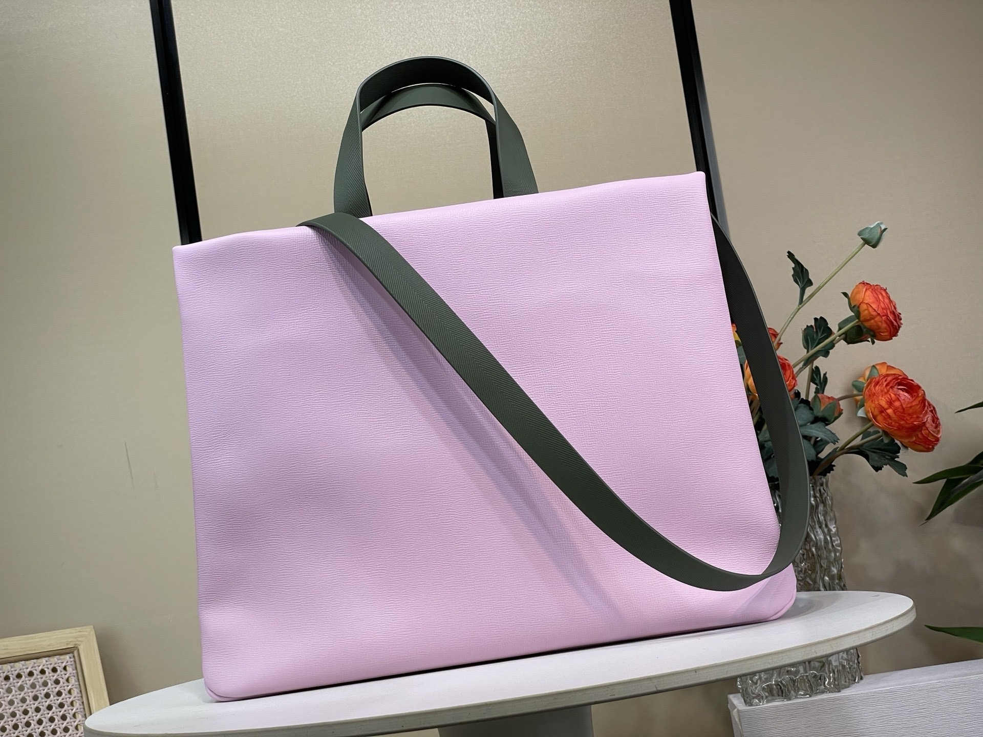 A roomy interior with multiple pockets ensures organized storage of all essentials, from laptops to documents. The dual carry systemâtop leather handles and a detachable shoulder strapâprovides versatile ways to wear, whether by hand or over the shoulder. A refined oversized silhouette that highlights modern craftsmanship.