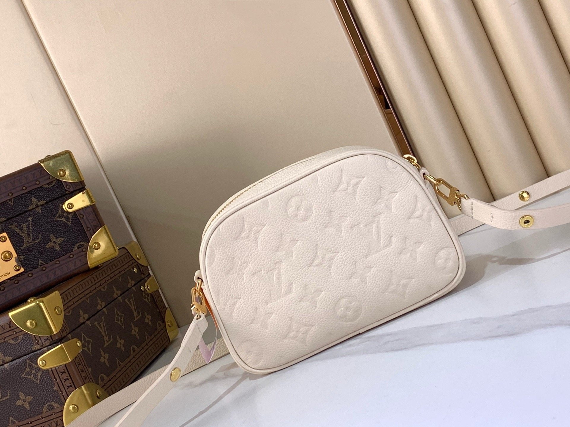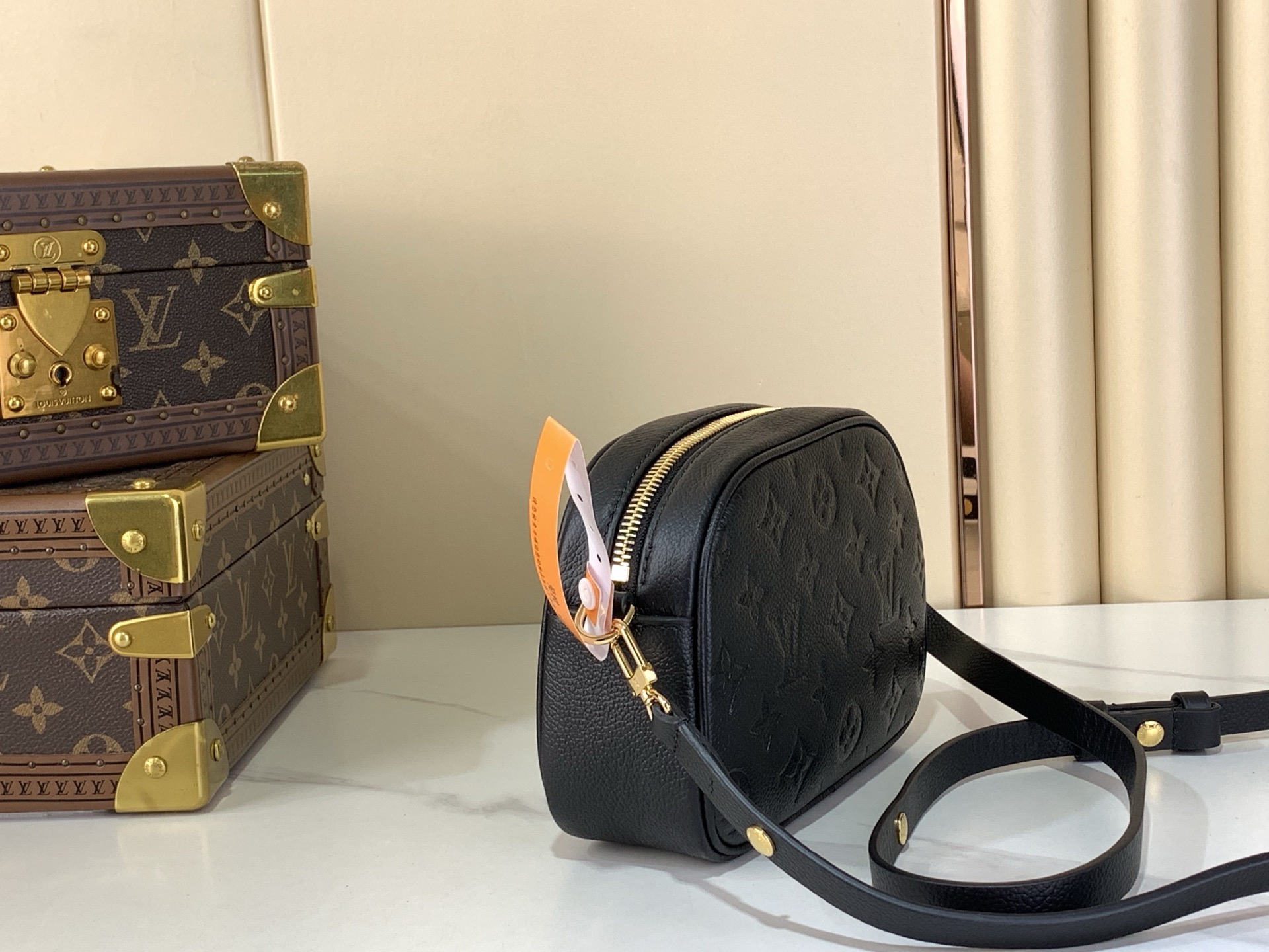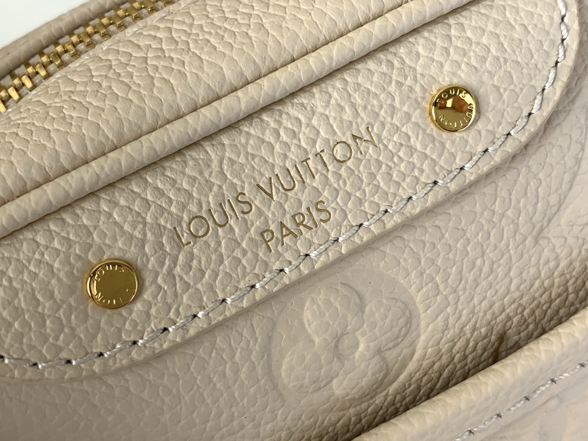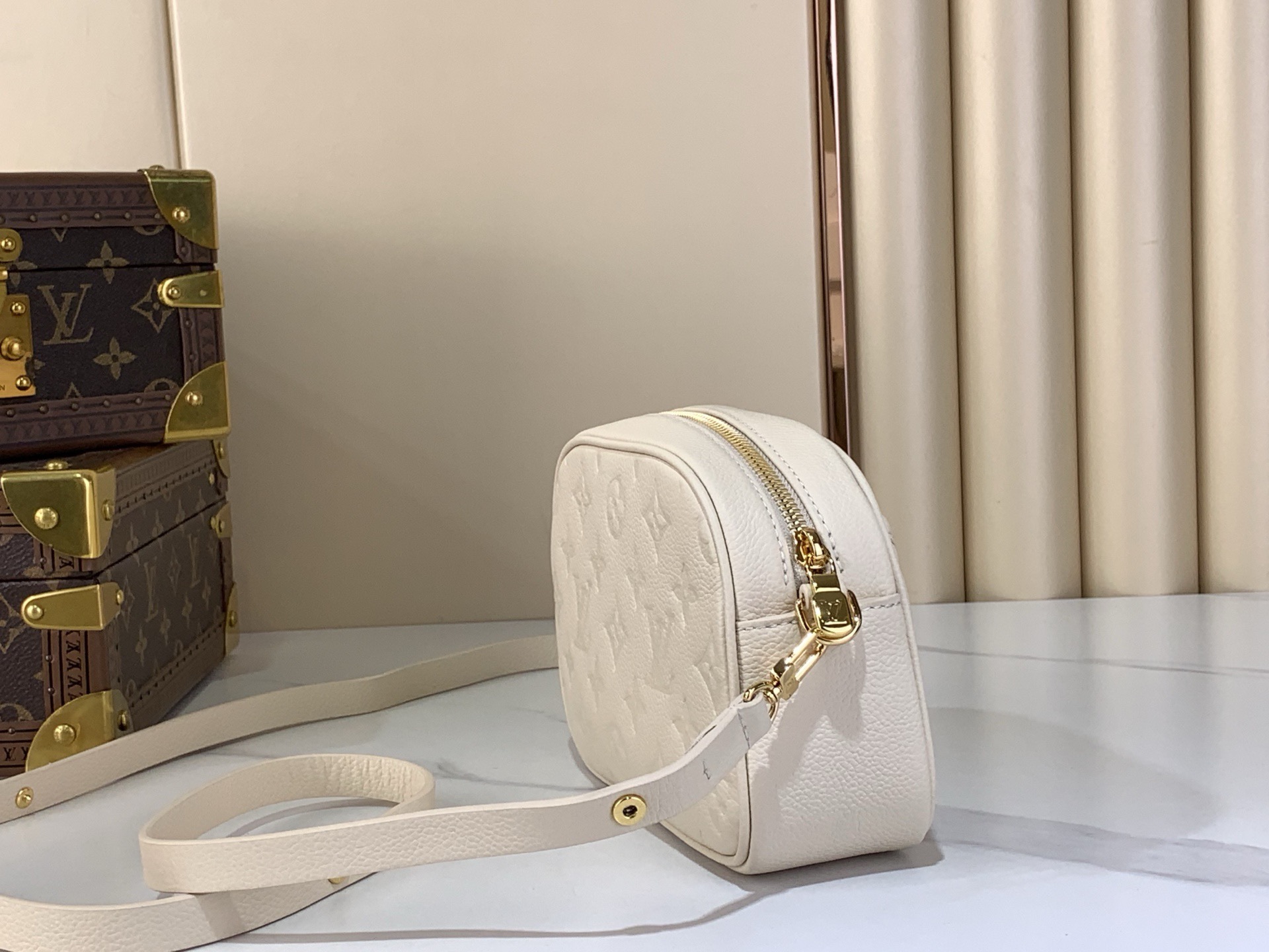 The Tiny Camera Bag (M25518 / M26509) from the Monogram Empreinte collection delivers a refined, compact silhouette crafted from premium embossed cowhide leather. The soft-grained leather features signature monogram embossing, complemented by radiant gold-tone hardware for an elegant finish suitable for both day and night.