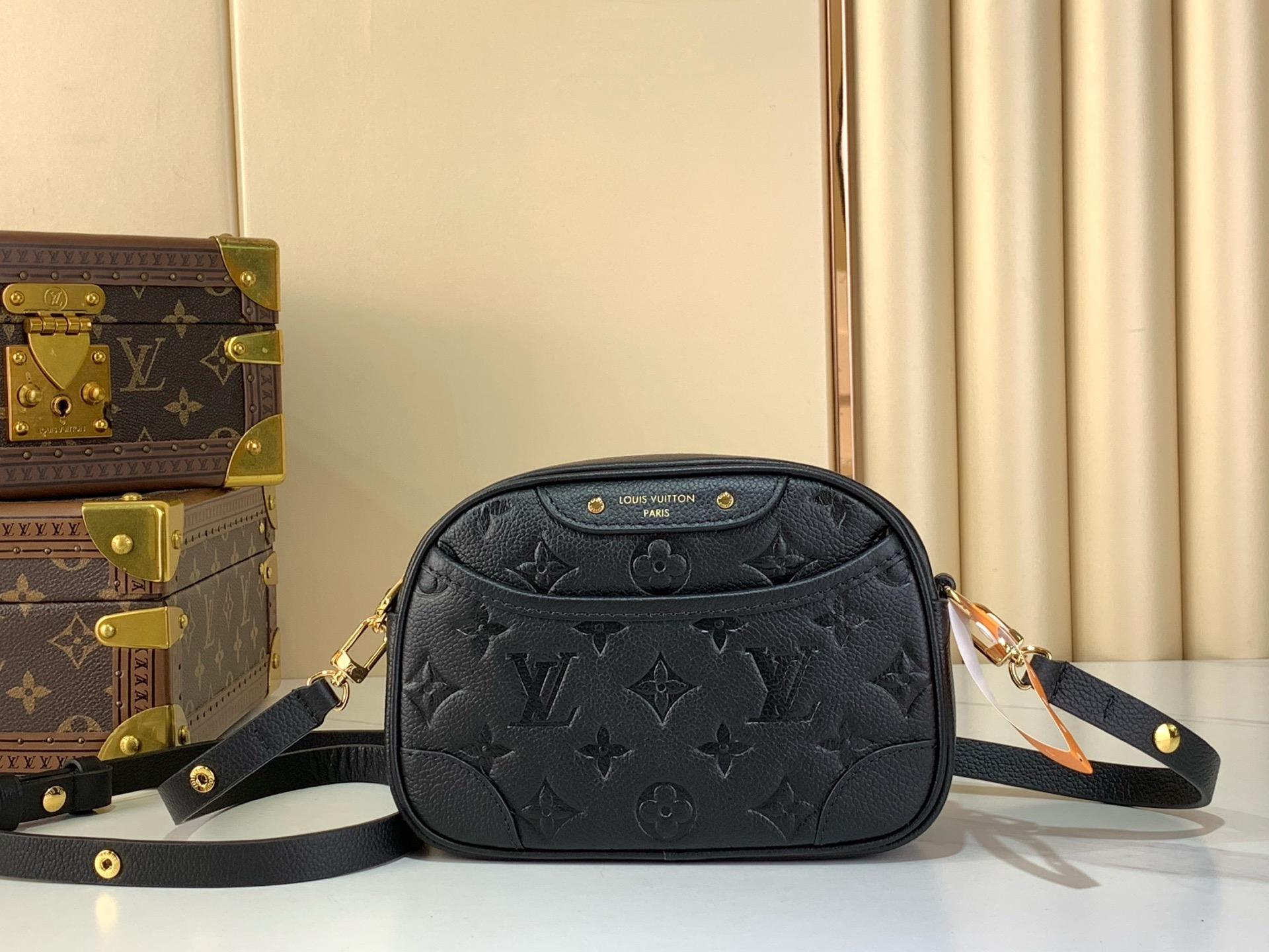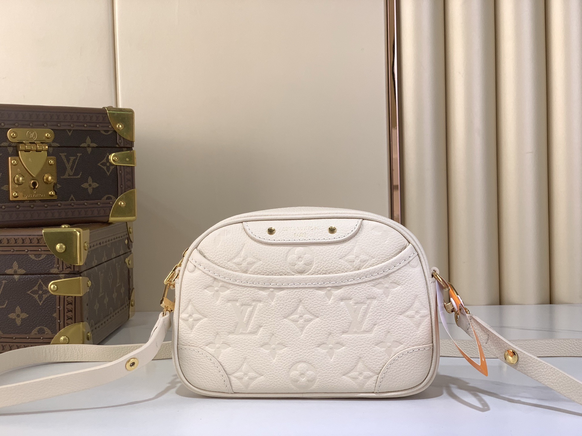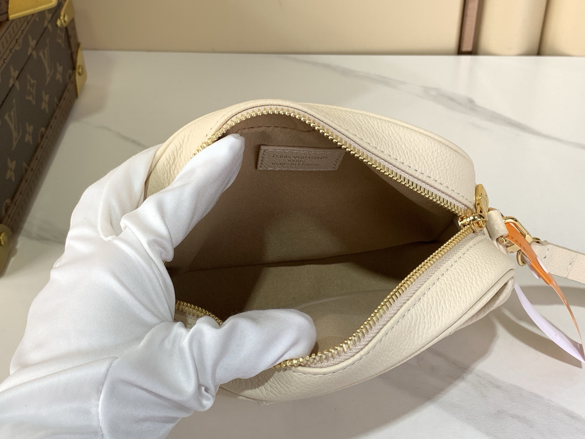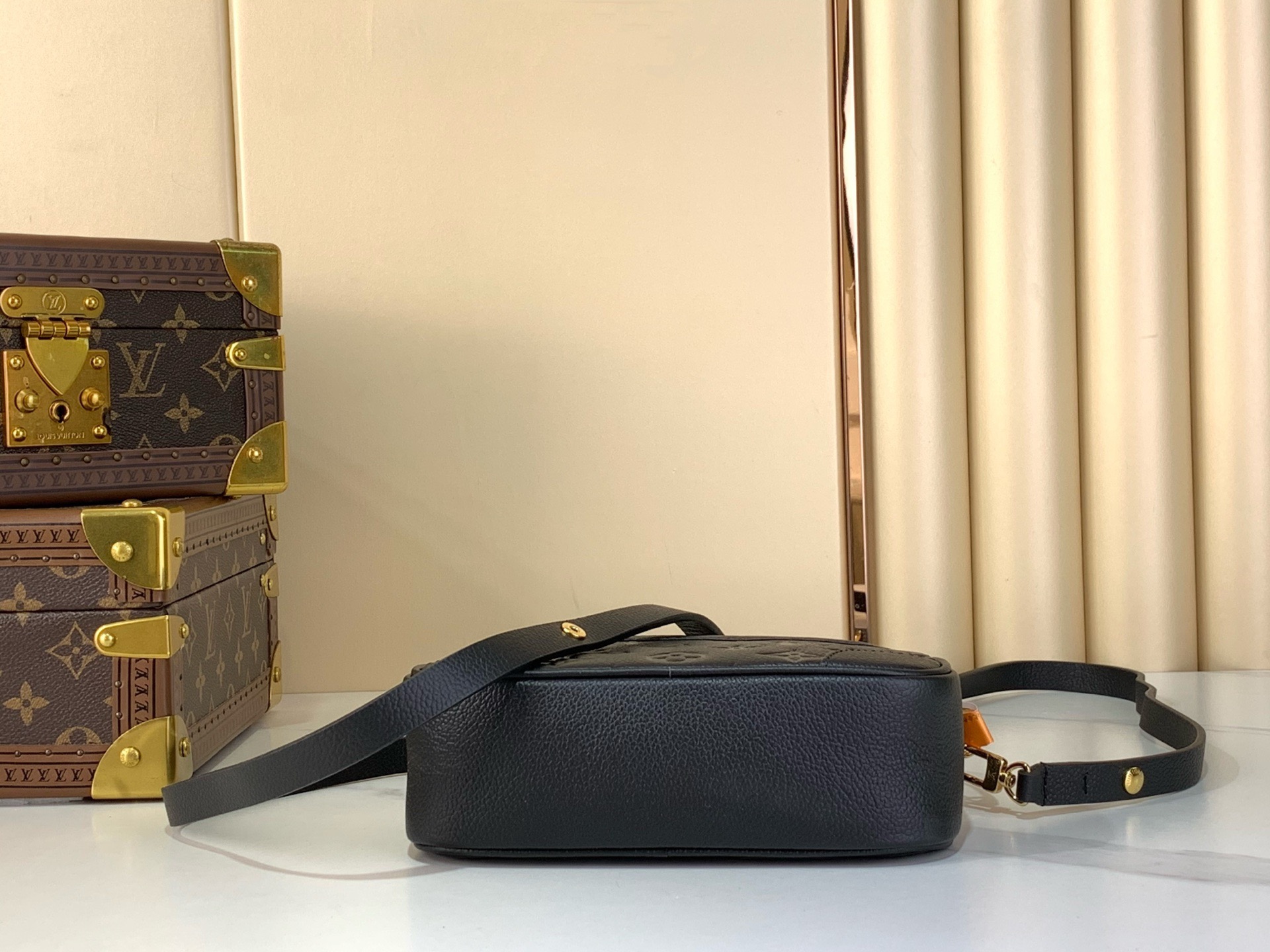The Tiny Camera Bag (M25518 / M26509) from the Monogram Empreinte collection delivers a refined, compact silhouette crafted from premium embossed cowhide leather. The soft-grained leather features signature monogram embossing, complemented by radiant gold-tone hardware for an elegant finish suitable for both day and night.